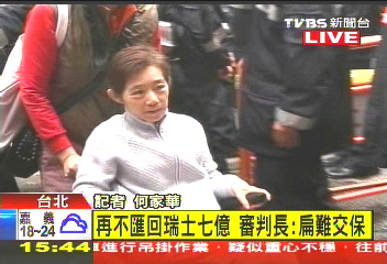 據(jù)臺(tái)灣TVBS報(bào)道,6月11日扁案就要二審宣判,今天再度開庭時(shí)傳喚陳水扁、吳淑珍、陳致中、黃睿靚等4人。法庭上,審判長當(dāng)著扁家4個(gè)人的面表示,要他們盡速將瑞士4個(gè)賬戶,將近7億新臺(tái)幣的錢匯回臺(tái)灣,否則月底(4月23日)陳水扁即將羈押期滿,屆時(shí)想要交保,重獲自由機(jī)率等于是零。