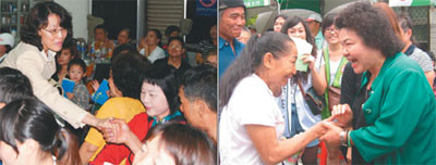 因為關(guān)心天雨,23日在高雄縣內(nèi)門鄉(xiāng)拜訪選民的黃昭順說,每天也是要握上千次的手,“會啊,都會握到手酸,只有忍耐”。遇到熱情的選民,尤其是原住民朋友更是豪邁,除了興奮的表情外,就是用熱情的握手來表達,“有的還是會一直搖晃,但這是他們表達熱情的方式,不能拒絕”。