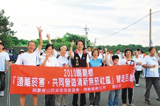 昨天清晨的全民健行活動(dòng)有3000鄉(xiāng)民參與,山西宮主委張伯祿、副主委汪忠政等率隊(duì)出發(fā),一路走到風(fēng)景優(yōu)美的大潭埤旺萊公園,關(guān)廟衛(wèi)生所配合舉辦反煙倡導(dǎo)、衛(wèi)教倡導(dǎo)活動(dòng)。