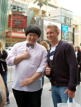 中新網(wǎng)4月23日電 據(jù)“中央社”報道,臺“小胖”林育群23日前往洛杉磯好萊塢星光大道朝圣,因為網(wǎng)絡(luò)上的高點擊率與脫口秀節(jié)目的訪問,小胖一路上頻頻被路人認(rèn)出,還有老外call out,當(dāng)場電話連線。