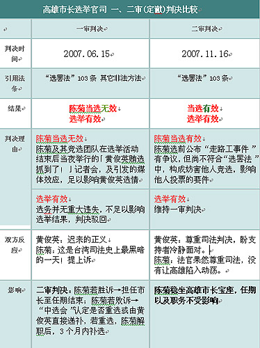 資料:高雄市長(zhǎng)選舉官司一、二審判決比較