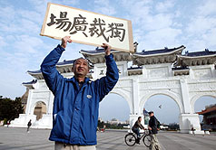中新網12月5日電 臺北市“議會”國民黨團5日表示,“中央”為更換“大中至正”牌匾而修改行政命令侵犯地方政府權責,還租下外圍路權,目的在挑起沖突,好于“大選”時陳水扁有宣布戒嚴的借口。黨團也吁民眾理性,不要順“獨裁者”的意。國民黨“大選”參選人馬英九則呼吁民眾用選票制裁一個獨裁與專斷的政府。