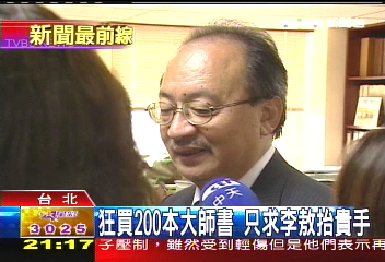 報(bào)道說(shuō),堆得高高的一疊書(shū)籍,全部都是李敖的新書(shū)“議壇哀思錄”;別以為是哪個(gè)超級(jí)粉絲買(mǎi)下它,這2百本書(shū)籍的主人,其實(shí)是民進(jìn)黨團(tuán)總召柯建銘?陆ㄣ懻f(shuō),“基本上200本,但李敖有打折,同事之間有算便宜一點(diǎn)!