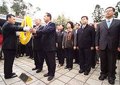 據(jù)“中央社”報道,吳伯雄與宋楚瑜今天罕見聯(lián)袂前往頭寮謁靈,兩人、四手握著同一花圈,向蔣經(jīng)國靈櫬鞠躬致意。吳、宋兩人都推崇蔣經(jīng)國的風(fēng)范,也樹立政治人物的楷模,并強調(diào)蔣經(jīng)國的作風(fēng)就是愛臺灣的最佳表現(xiàn)。