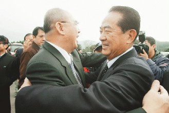 據(jù)臺(tái)灣《聯(lián)合報(bào)》報(bào)道,吳伯雄與宋楚瑜一見面即熱情擁抱,相互致意。媒體追問國(guó)親是否有合并計(jì)劃。宋楚瑜表示,國(guó)親有共同理念,“將以實(shí)際行動(dòng)證明給大家看!眳遣蹌t語帶玄機(jī)地說,“請(qǐng)大家拭目以待!