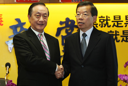 民進(jìn)黨2008參選人謝長廷今天拜會新黨主席郁慕明,再度宣稱組“大聯(lián)合政府”,要共生共治;郁慕明則說,對新黨而言,共生優(yōu)于共治,會繼續(xù)維持藍(lán)營監(jiān)督者角色。