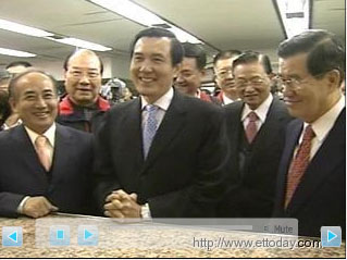 據(jù)臺灣東森新聞報(bào)道,馬英九、蕭萬長今天在“立法院長”王金平、競選總部主委江丙坤、秘書長吳敦義、國民黨主席吳伯雄及多位黨籍“立委”等人的陪同下,繳交申請書、1500萬支票、政黨推薦書、個人數(shù)據(jù)等相關(guān)數(shù)據(jù)登記參選,正式成為候選人。