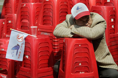 謝長廷的競選總部位于至圣路與博愛路口,是他2003年蟬聯(lián)高雄市長的福地。當(dāng)初謝選擇這里,不排除有“風(fēng)水寶地”的考慮。但3月8日當(dāng)天,這里已經(jīng)完全被裝點(diǎn)成親子樂園。大門外的廣場上擺放著可容納數(shù)十名兒童的玩具蹦床、兩人多高的埃及獅身人面像充氣玩偶、五彩繽紛的氣球門,廣場一角上演著龜兔賽跑的兒童劇?偛績(nèi)更是熱鬧,真人扮演的毛毛蟲、花朵跑來跑去;模仿哈利波特巫師裝扮的選務(wù)人員,也在熱心地教小朋友們做游戲。