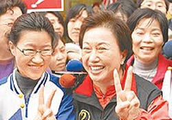 國民黨“副總統(tǒng)”候選人蕭萬長夫人朱俶賢11日一大早就帶著女兒蕭如芬站在路口,向過往的用路人拜票,朱俶賢強(qiáng)調(diào),她要用誠意和實際行動來感動選民,激發(fā)選民的投票意愿。