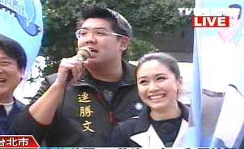中新網(wǎng)3月20日電 據(jù)臺(tái)灣TVBS報(bào)道,選戰(zhàn)最后關(guān)頭,連勝文才剛剛坐滿月子的太太蔡依珊,今天產(chǎn)后第一次露面,為馬英九拜票。
