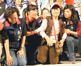 扁自訴319槍傷 陳義雄妻女向選民跪求公道(圖)