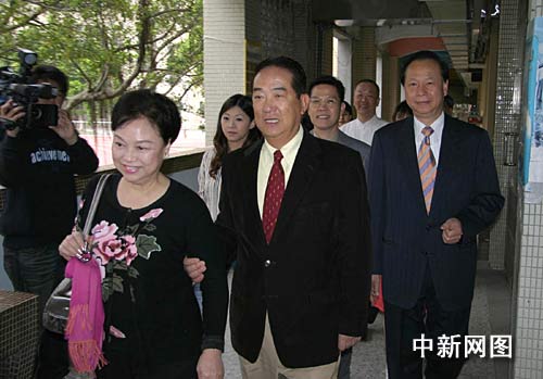 二00八臺灣地區(qū)領(lǐng)導(dǎo)人選舉投票二十二日上午八點開始,親民黨主席宋楚瑜攜夫人陳萬水一同前往前往投票所投票。曾嘉 攝