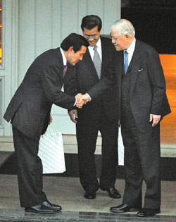 據(jù)臺(tái)灣東森新聞報(bào)道,李登輝夫婦破天荒親自到車(chē)庫(kù)迎接馬英九的到來(lái),可見(jiàn)他對(duì)這位后生晚輩的重視,到別人家作客禮數(shù)當(dāng)然要周全,馬英九一共準(zhǔn)備了一盒蘋(píng)果、一瓶酒當(dāng)作伴手禮之外,最重要的還有4本馬英九的著作,分別是《原鄉(xiāng)精神》、《青春鐵馬向前行》、《治國(guó)》還有《沉默的魄力》。