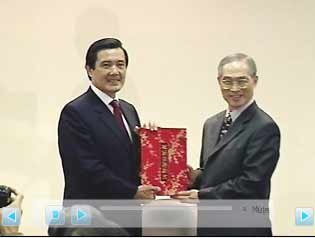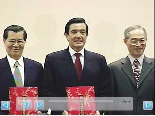 據(jù)臺灣東森新聞報道,“中選會”主委張政雄在多位“中選會”委員陪同下,上午10點(diǎn)前準(zhǔn)時抵達(dá)國民黨中央黨部。在馬英九接下“總統(tǒng)”當(dāng)選證書后,蕭萬長也接下“副總統(tǒng)”當(dāng)選證書,張政雄并主動協(xié)助馬英九打開當(dāng)選證書合影留念,張政雄致詞表達(dá)祝賀。