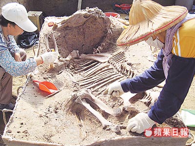 考古隊成員指出,今年春節(jié)后,隊員在緊鄰致遠管理學院南側鳳池考古區(qū)內工作時,第一次在地表一公尺下挖出一完整的馬匹遺骸,“猶如刻意保留下來一般。”隊員表示,過去經常發(fā)現(xiàn)狗、豬、牛的遺骸,但都不完整。