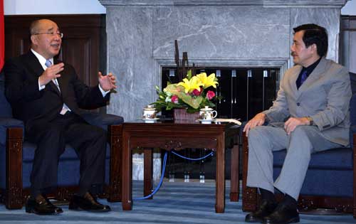 馬英九詢問包機直航與大陸觀光客客來臺的問題,吳伯雄說,一切就等;鶗麻L江丙坤去大陸再說,原則已經(jīng)確定,中共總書記胡錦濤說要用最迅速、最積極的辦好這些事情。