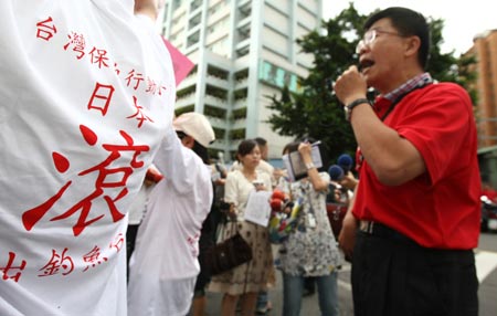 臺(tái)北縣永和市民代表黃錫麟帶領(lǐng)數(shù)名民眾在現(xiàn)場(chǎng)抗議,要求日本政府立即放人并且離開(kāi)釣魚(yú)島。