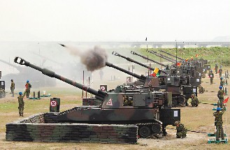 據(jù)臺灣《聯(lián)合報》報道,此次操演項目包括12門M109A5自走炮,在大甲溪出海口操演反舟波射擊,臺軍官兵循1門、3門、6門及12門的翼次及連續(xù)群射方式,對3000米遠(yuǎn)的海上目標(biāo)區(qū)射擊,現(xiàn)場炮聲隆隆、硝煙四起,海面上目標(biāo)區(qū)震起水柱,完成108發(fā)炮彈的射擊訓(xùn)練。