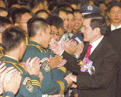 臺陸軍官校慶祝建校84周年,馬英九參加,近距離與學生接觸。(圖:臺灣《中國時報》)