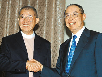 王建煊(左)拜會錢復(fù)(右)。(圖:臺灣《聯(lián)合晚報》)