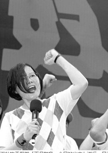 8月30日,蔡英文帶領(lǐng)綠營(yíng)民眾上街游行,表達(dá)對(duì)馬英九當(dāng)局的不滿。