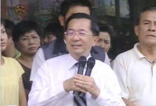 陳水扁9日南下屏東表示,這是他最后一次跟大家見面,因?yàn)樗罊z方下周絕對要抓他的兒子與媳婦。(圖片來源:臺灣“今日新聞”)