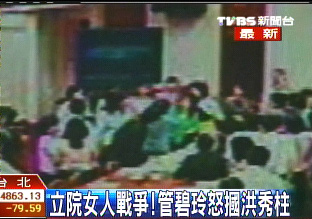 但國民黨“立委”洪秀柱上前制止時,將綠營女“立委”手中的廣告牌撥向一旁管碧玲的助理,造成助理眼睛受傷,管碧玲不滿上前理論,情急下居然打了洪秀柱一巴掌,讓洪秀柱火冒三丈爆發(fā)拉扯。