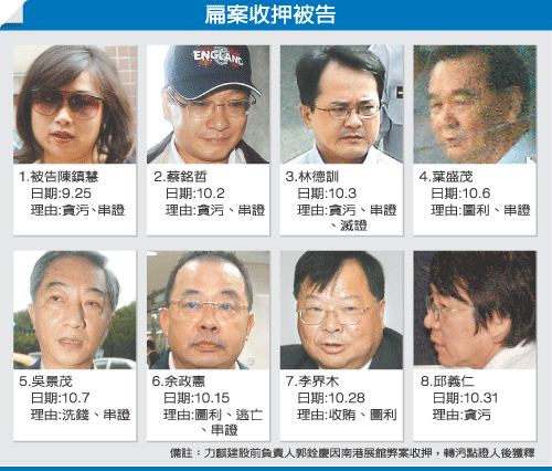 據(jù)了解,8名在押被告只有陳鎮(zhèn)慧安排在女所的禁見房;其余7人,看守所考慮同案被告不要關(guān)在同一層,因此將蔡銘哲、葉盛茂、余政憲、李界木4人,安排在忠三舍;林德訓(xùn)、吳景茂、邱義仁,則安排住進孝三舍,以方便管理。兩棟樓雖然只相隔數(shù)十公尺,卻絕不可能見面。