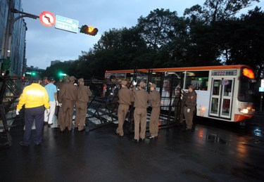 臺檢方特偵組周遭因應(yīng)陳水扁應(yīng)訊實施交通管制。(“中央社”圖)