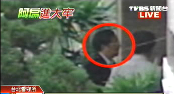陳水扁神情疲憊走進臺北看守所,不斷向所方抱怨手被拉傷,造成他疼痛不已,不過仍得上銬住進忠三舍,陳水扁囚衣編號2630,這段在看守所的時光間,陳水扁沒有名稱,只有代號。