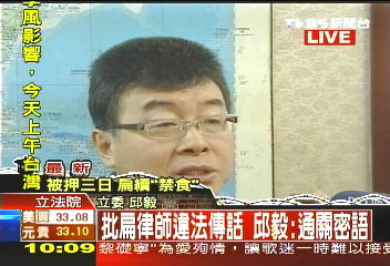 國民黨“立委”邱毅稱,陳水扁十大聲明中“撩落去”的說法疑為陳水扁對(duì)外喊話聚眾的通關(guān)密語。圖片來源:臺(tái)灣“今日新聞”