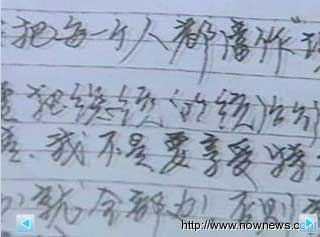 臺(tái)灣“今日新聞”報(bào)道,陳水扁在醫(yī)院3天洋洋灑灑寫了兩萬(wàn)多字的萬(wàn)言書,但是根據(jù)看守所規(guī)定,收容人不能帶筆等尖銳物品以免危險(xiǎn),所以根據(jù)了解他是用去掉筆管的筆芯來(lái)寫字,能這樣寫出2萬(wàn)5千字,真是“毅力驚人”。