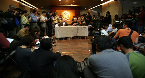 各方傳媒早已眾集在“法務(wù)部”一樓大廳等候世紀(jì)大案的起訴書。據(jù)悉,起訴書正文約有209頁、59頁表格及13頁的圖,合計約281頁。