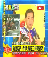 鄭文龍表示,“可能是這個星期五(19日),不過時間上由扁辦規(guī)劃,這部份由扁辦說明!