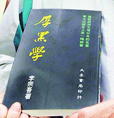 《厚黑學》主要是論述中國歷史上英雄豪杰之所以成功,無非“面厚、心黑”。國民黨“立委”得知扁收到《厚黑學》后多所嘲諷,黨團書記長張碩文說:“阿扁其實就是最好的《厚黑學》,前無古人、后無來者,他是最好的活教材!