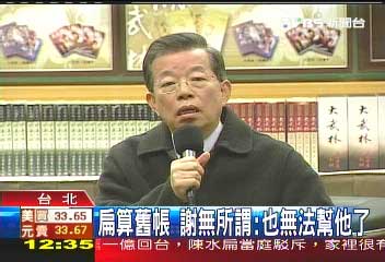 謝長廷說,“他其實(shí)也曾經(jīng)握著我的手,眼眶泛紅講說,他只要生命在一定會報答我,也曾經(jīng)有這樣的鏡頭,我也覺得那是事實(shí)的,他怎么講都沒有關(guān)系,因?yàn)槲乙呀?jīng)沒有辦法幫助了!
