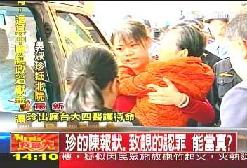 吳淑珍在兒子陳致中的陪同下,于下午2點10分左右,到達臺北地方法院開庭,因臺北地檢署才有無障礙設(shè)施,吳淑珍由北檢進入,再搭電梯到北院。