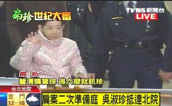 中新網(wǎng)3月3日電 據(jù)臺(tái)灣TVBS報(bào)道,陳水扁夫人吳淑珍3日下午在兒子陳致中的陪同下再度出庭,除了今天氣溫比較低,會(huì)不會(huì)對(duì)吳淑珍身體狀況造成影響之外,今天在庭上,吳淑珍會(huì)不會(huì)幫丈夫陳水扁求情解除羈押,外界也很關(guān)注。以下為法庭攻防實(shí)錄: