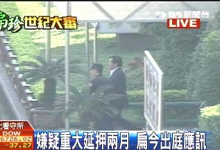 上午8點(diǎn)33分,穿著深色西裝、淺色襯衫,陳水扁搭上北院警備車往法院出發(fā),看守所戒護(hù)人員全程拿DV搜證,扁將就機(jī)要費(fèi)與南港案出庭應(yīng)訊,質(zhì)疑檢方證據(jù)能力,包括辜家兄弟、李界木等人的偵訊光盤,請(qǐng)求勘驗(yàn)證據(jù)能力。