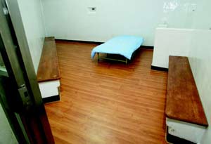 中新網(wǎng)3月4日電 據(jù)臺灣《蘋果日報》報道,陳水扁上周四出庭抱怨無法在候?qū)徥倚菹ⅲl(fā)名嘴批評法院候?qū)徥矣峙K又臭還有血漬,臺北地院為澄清負(fù)面?zhèn)髀劊?日晚破天荒開放媒體參觀候?qū)徥,現(xiàn)場11間挑高逾3米的囚室,搭配白色的墻面,十分干凈清爽,而且還有空調(diào)調(diào)節(jié)溫度,稱得上是高級牢籠。