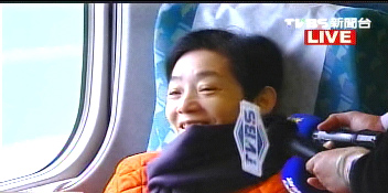 吳淑珍上一次離開(kāi)臺(tái)北應(yīng)該是3年前陳致中要到黃睿靚家下聘時(shí),今天第一次搭乘高鐵,吳淑珍臉色有些蒼白,不過(guò)看起來(lái)神情相當(dāng)愉悅,搭乘高鐵約兩個(gè)小時(shí)車(chē)程中,難得和記者面對(duì)面聊天。