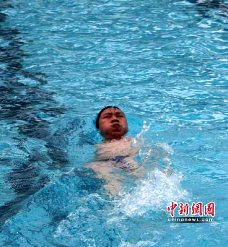 中新網(wǎng)荊門6月30日電(吳奇勇 潘小龍)記者今日在湖北荊門市體育中學(xué)游泳館看見,數(shù)名殘疾人運動員正在泳池里刻苦訓(xùn)練,2004、2008兩屆殘疾人奧運會冠軍何軍權(quán)也赫然在內(nèi)。
