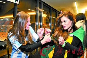 不過,記者們千萬不要以為世界小姐的到來是為了“招待”老記們。主辦方只是希望利用媒體和世界小姐,對世界杯的1/4決賽進行預熱宣傳。昨天晚會的高潮就是邀請8名世界小姐分別按照各自球隊目前的對陣形勢,進行點球大決戰(zhàn)。結果阿根廷小姐斯科爾科娃技壓群芳,奪得了冠軍,大會當場向她頒發(fā)了一尊仿造的大力神杯。