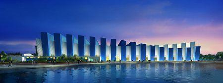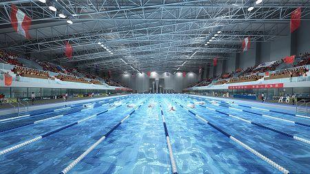 廣東奧林匹克體育中心游泳跳水館是亞運會游泳跳水項目的主要比賽場館,將舉行游泳、跳水和現代五項游泳比賽及亞殘會游泳比賽,賽后將作為國家南方訓練基地,滿足國家隊冬訓及亞運會之后舉行重大賽事的要求。該館總坐席數為4584座,分別設置了標準比賽池(含移動池岸)、訓練池、跳水池。其設計力求與原基地環(huán)境相協調,總體布局上延續(xù)了奧林匹克體育中心的總體規(guī)劃設計理念,游泳館主體造型采用雙色螺旋流動造型,主體建筑白色和藍色相間,既巧妙地隱喻了廣州“云山珠水”的城市地理特征,又是對主體育場“飄帶”曲線的延續(xù)。同時通過相互穿插流動造型,結合建筑朝向,很好的滿足了建筑內部空間高度、采光通風、建筑節(jié)能以及合理布置設備管道的需求。