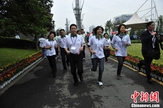 中新網(wǎng)成都9月25日電 (郝思宏)25日上午,安利紐崔萊健康跑在成都溫江碧落湖公園舉行,著名川籍奧運(yùn)冠軍——“跳水皇后”高敏現(xiàn)身活動(dòng)現(xiàn)場(chǎng)并擔(dān)任領(lǐng)跑嘉賓,成都市政協(xié)副主席楊興平、成都市體育局副局長(zhǎng)馮曉鐘、溫江區(qū)區(qū)委書(shū)記田蓉等領(lǐng)導(dǎo)出席活動(dòng),過(guò)萬(wàn)市民參加了本次健康跑。