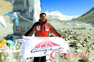 廣州日報(bào)記者助亞運(yùn)會(huì)旗高高飄揚(yáng)在珠峰上