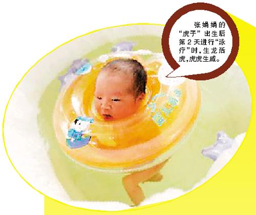 張娟娟的“虎子”出生后第2天進(jìn)行“泳療”時(shí),生龍活虎,虎虎生威。