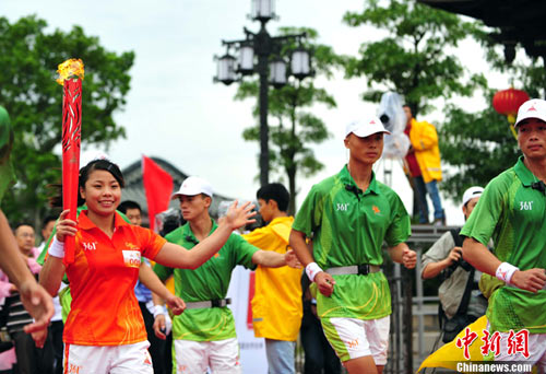 22日的亞運火炬?zhèn)鬟f讓現(xiàn)代文明和古代文化在這里激情交匯。上午9時,火炬?zhèn)鬟f點火儀式在明代閩贛交通要沖廣濟門城樓前舉行,在具有濃郁潮州特色的潮州醒獅表演后,第一棒火炬手張宛瓊從潮州市委書記駱文智手中接過火炬。