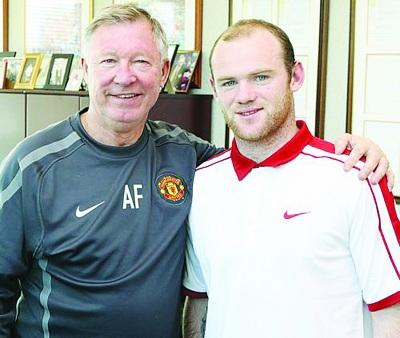 弗格森摟著魯尼微笑合影