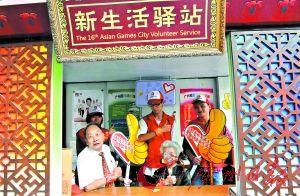 在剛剛過去的周末,廣州年紀最老、最小的亞運城市志愿者正式在上下九步行街的“西關小屋”上崗。80多歲的周家禎向韻平夫婦,腕上戴著色彩斑斕的志愿彩,一手舉著“大拇指”一手互相攙扶,四處請路人留下亞運祝福。而思洋、思緣這對小姐妹,則身穿不稱體的志愿者紅馬甲跟在父母身后,一時勸路人不要隨手丟棄垃圾,一時請圍攏在小食店前的顧客排隊等候。